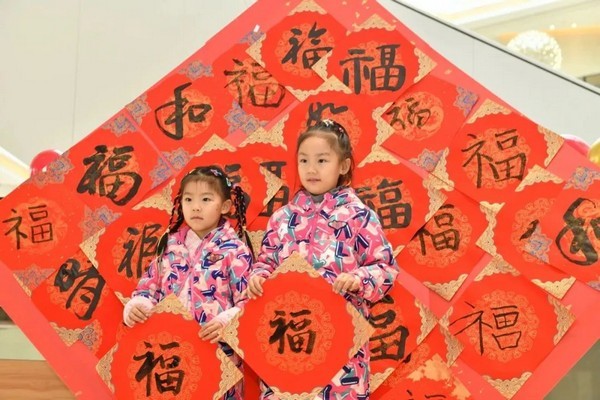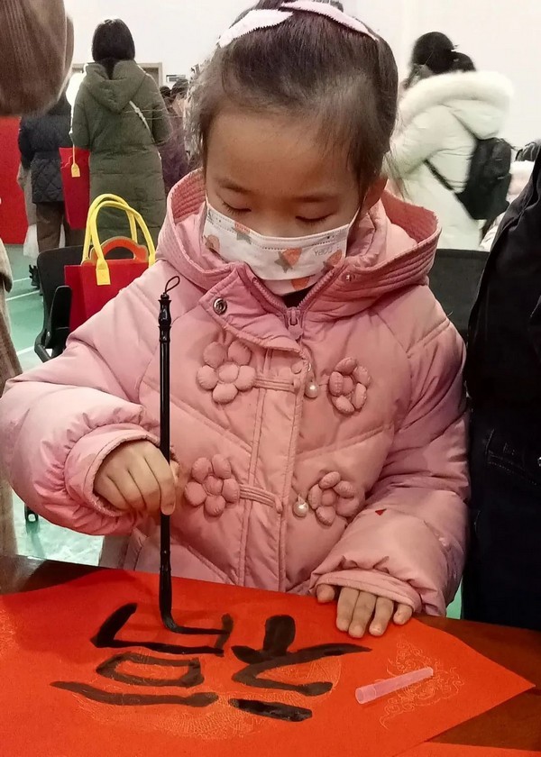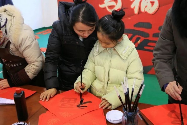 “这个剪纸真好看”“我也想试一试”“妈妈,我们自己写春联吧”……