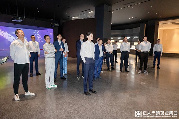 参访期间,参访团实地参观正大天晴数智未来体验中心、研究院及生物制品车间,近距离了解企业核心技术实力。正大天晴副总裁陈辉、赵伟、高帆、杨玲,及研发、营销、生产、BD 、人资等核心业务团队成员陪同参访。