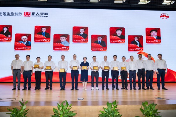 岁月鎏金,党徽闪耀。8月30日,正大天晴2025年“两优一先”表彰典礼暨“干出实绩担当”主题演讲比赛在南京厂区隆重举行。正大天晴高级副总裁、党委委员张喜全,副总裁耿文军,副总裁、党外知识分子联谊会会长、农工党正大天晴支部副主任夏春光,党委书记刘人菠,及党委班子成员,各系统相关领导、党支部书记出席活动,与受表彰人员、光荣在党25年以上党员代表、2024年和2023年优秀共产党员、各支部党员代表以及民主党派代表共同见证了这一荣耀时刻。