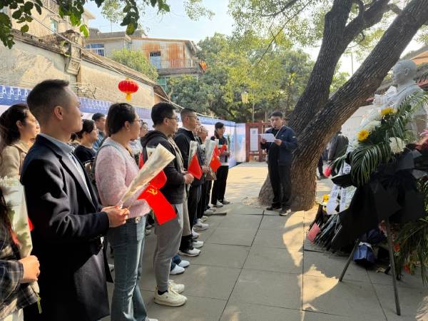 11月22日,南京地区各党支部代表一同走进位于福州市仓山区螺洲镇的吴石故居。在吴石将军雕像前,党员们手持国旗党旗,深深三鞠躬,用一朵朵白菊寄托敬意。吴石将军心系祖国统一、血洒宝岛台湾,他用“若一去不回,便一去不回”的铮铮誓言诠释着最纯粹的信仰,跨越时空,深深震撼着在场的每一位党员心灵。