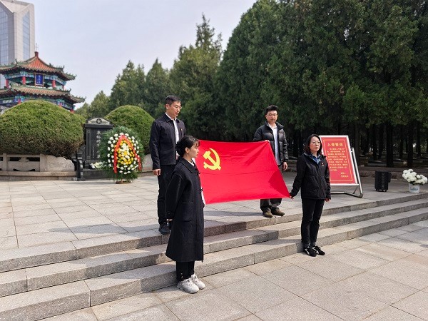 上午,全体人员来到孟良崮战役纪念馆烈士陵园,庄严肃立,向粟裕将军墓碑敬献花篮、向牺牲的革命先烈敬献鲜花,全体默哀致敬,深切缅怀为民族独立和人民解放事业英勇献身的革命先辈。并重温入党誓词,感悟初心使命。